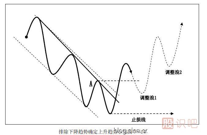 根據(jù)趨勢交易法的假設,我們排除了之前的下降趨勢,那么,未來展開下降趨勢的可能性是否就是“0”呢?真實的情況是未來跌破最低點,并恢復之前的下降趨勢的概率仍然存在,如果發(fā)生這樣的情況,我們將采取止損的交易策略。