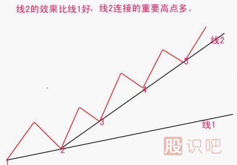2)找出明顯得兩個(gè)地點(diǎn)(谷底),連成一條向上傾斜的直線,如果該直線不能包括某一段趨勢段中的所有價(jià)位,那么有必要再去尋找地點(diǎn)來嘗試,直到包含了某一段趨勢段的所有價(jià)位.