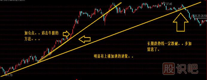 可以切過實(shí)體邊緣,但不要切過實(shí)體為原則。而突破和跌破趨勢線,要以收盤價(jià)為有效突破或跌破的確認(rèn)特別是這條趨勢線近于水平走勢時(shí)。