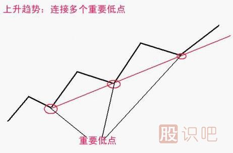 趨勢線是用劃線的方法將低點(diǎn)或高點(diǎn)相連,利用已經(jīng)發(fā)生的事例,推測次日大致走向的一種圖形分析方法。我們發(fā)現(xiàn)在各種股價(jià)圖形中,若處于上升趨勢,股價(jià)波動(dòng)必是向上發(fā)展,即使是出現(xiàn)回?fù)跻膊挥绊懫淇傮w的漲勢,如果把上升趨勢中間回?fù)醯忘c(diǎn)分別用直線相連,這些低點(diǎn)大多在這根線上,我們把連接各波動(dòng)低點(diǎn)的直線稱為上升趨勢線。