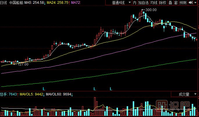 中國船舶(600150)該股是非常經(jīng)典的強(qiáng)勢高價股。在股價超過100元的股票中表現(xiàn)最為突出,該股的趨勢非常明朗,清晰的上升通道,沿著5日線和24日生命線不斷振蕩上漲,不斷創(chuàng)出歷史新高。在刷新歷史新高的過程當(dāng)中都是平均量,成交量不是非常突出,也沒有特別的一堆量,這個就是籌碼鎖定非常好,大部分籌碼都在主力的手上才會出現(xiàn)這樣的成交量不放大的情況下不斷上漲的走勢圖。股票就是這樣,暴漲之后就是暴跌,資金推動型的股票規(guī)律沒有因為市場的擴(kuò)大而改變。在單邊下跌、沒有做空機(jī)制的中國股票市場中,最好的回避風(fēng)險的方法就是空倉。對于超級牛市當(dāng)中的牛股,最好的操作策略就是持有。一直到跌破生命線或在高位出現(xiàn)明確的見頂信號之后才采取賣出的行動。
