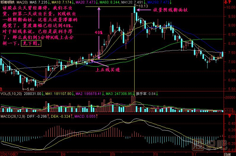 總之分辨漲停板的好、壞是一個(gè)關(guān)鍵,它可以窺視主力的操盤決心,一般情況下出現(xiàn)在啟動位置附近的漲停板,之后不能漲停也不要急于出貨,而上升中途的就要小心點(diǎn)了,如果不能漲停,就最好看F5和F30等線來操作,集中出現(xiàn)幾個(gè)頭部信號就出來為好。如果是出現(xiàn)在拉升后期的,只要不能漲停,那就看F5和F30等線找賣點(diǎn)即可。