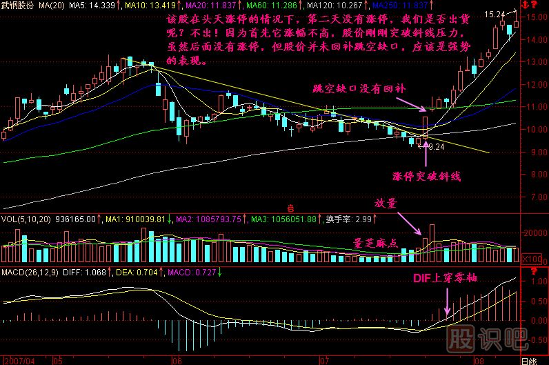 小結(jié):漲停板是多頭氣勢極其強(qiáng)盛的表現(xiàn),一個(gè)股票從沒出現(xiàn)過漲停板的話,說明該股的主力太窩囊,也或者力量不夠,甚或就沒有主力。