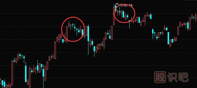 二、在K線形態(tài)上,K線實體較小,經(jīng)常有多根或連續(xù)性的小陰小陽線,并且其間經(jīng)常出現(xiàn)十字星走勢;