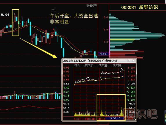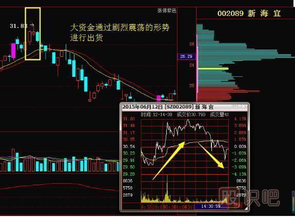 莊家利用股價(jià)全天劇烈震蕩,吸引散戶進(jìn)場。當(dāng)股價(jià)強(qiáng)勢上揚(yáng)時(shí),散戶以為股價(jià)還將拉升,追漲進(jìn)場;當(dāng)股價(jià)下降非常多時(shí),散戶以為底部到來,爭相“抄底”,此類走勢,大概率是大資金出逃。
