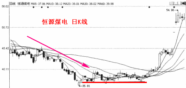 可以少量買入,如果股價(jià)在盤整后繼續(xù)下跌,則應(yīng)該及時(shí)止損出常 如圖所示恒源煤電日K線圖。從圖中可以看到,股價(jià)在35.81元附近開(kāi)始長(zhǎng)期橫盤,結(jié)束了之前的暴跌行情,這說(shuō)明,在這個(gè)價(jià)位附近,有大量的多方進(jìn)入市場(chǎng),空方的下跌動(dòng)力開(kāi)始減弱。因此短線交易可以在此時(shí)少量買入股票,因?yàn)楫?dāng)盤整行情結(jié)束時(shí),多方有可能取得這場(chǎng)較量的勝利,未來(lái)行情可能轉(zhuǎn)變成上升的趨勢(shì)。此時(shí)如果能夠買入股票,可以說(shuō)是以最低價(jià)買入的。