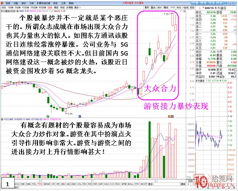對(duì)于大眾追棒投資者較容易理解,游資接力那怎么理解?游資接力簡(jiǎn)單的說(shuō)就是社會(huì)上各種各樣單個(gè)資金量小的數(shù)百萬(wàn)起,大的持有數(shù)個(gè)億的資金,他們?cè)趥€(gè)股中進(jìn)進(jìn)出出,短線交易炒一把小賺一筆就走行為。這些資金沒(méi)有總帥沒(méi)有總指揮也沒(méi)有共同目標(biāo)。當(dāng)然在市場(chǎng)已經(jīng)產(chǎn)生出現(xiàn)明顯熱點(diǎn)時(shí),他們就會(huì)向這些熱點(diǎn)