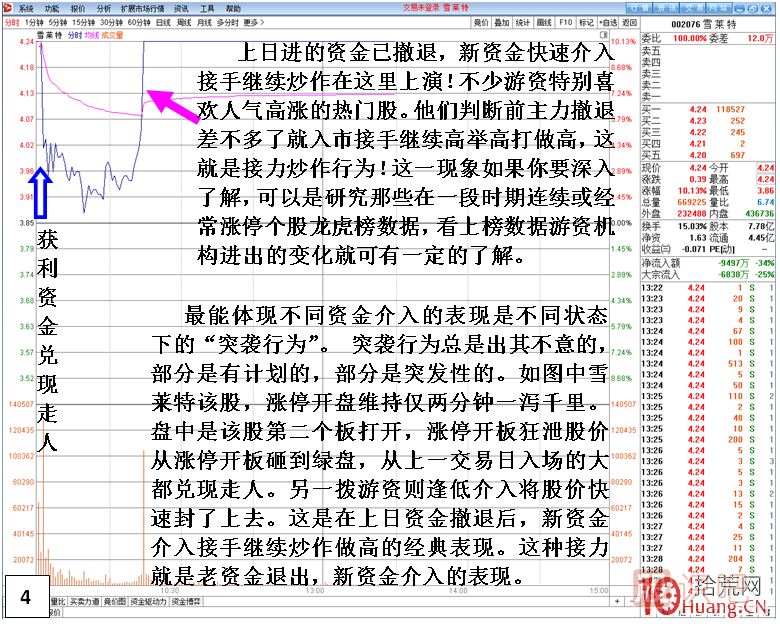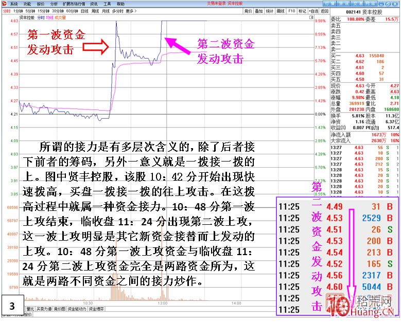 市場(chǎng)上相當(dāng)因多突發(fā)消息被暴炒的概念股,就是以游資接力作為主要力量炒起去的。不清楚的人總以為那是一個(gè)莊家自己在瘋狂拉升惡炒。游資接力行為中大部分屬于市場(chǎng)中自然正常買(mǎi)賣(mài)交易,多數(shù)沒(méi)有什么特別特征。部分游資接力入市動(dòng)作特別明顯的,他們的行為動(dòng)作就可明顯的看到。筆者選了幾個(gè)游資接力入市盤(pán)口表現(xiàn)較突出的個(gè)股為例,通過(guò)盤(pán)口動(dòng)作剖析一下這方面現(xiàn)象。