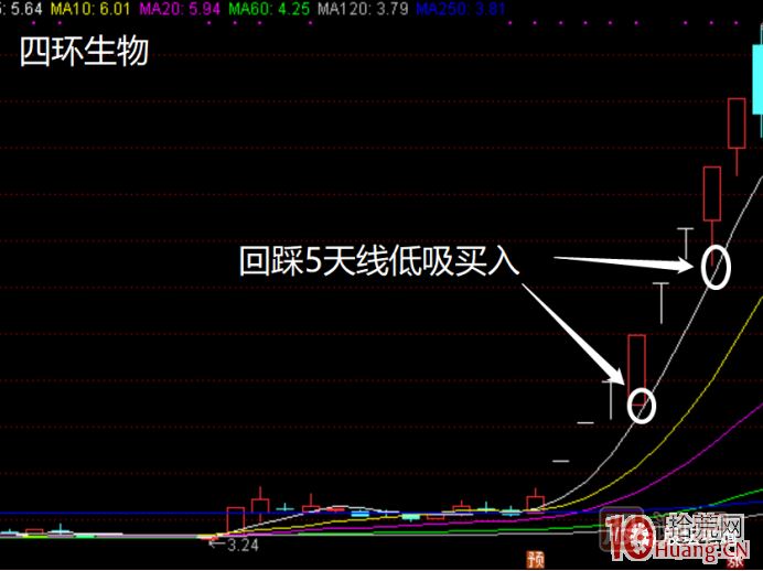 第二:低吸關(guān)鍵支撐,5天線(最差10天線)對于強(qiáng)勢股、龍頭、妖股而言,為了保持強(qiáng)勢,一般不會(huì)跌破5天線,所以可以重點(diǎn)關(guān)注個(gè)股回踩5天線出現(xiàn)的買點(diǎn)。