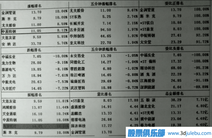 價(jià)當(dāng)天放量上穿多條均線,且當(dāng)天K線姿態(tài)并不算高,如選股技巧解析利用漲幅排行尋找強(qiáng)勢(shì)股果該股屬于強(qiáng)勢(shì)明顯的個(gè)股同時(shí)又滿足這個(gè)條件,那短線股價(jià)就一定具有進(jìn)一步的上漲空間,當(dāng)天股價(jià)沒(méi)有漲停的話可在當(dāng)天收盤前快速跟進(jìn),短線收益較為明確。如圖1所示是2011年9月6日收盤時(shí)的深市綜合排名情況,圖中漲幅排名欄顯示的六只個(gè)股經(jīng)過(guò)分別查看K線圖后發(fā)現(xiàn)中原特鋼(002423) 當(dāng)天的K線放量上穿了多條均線(如圖所示),強(qiáng)勢(shì)特征-覽無(wú)余, 后期進(jìn)一一步 上漲非常有望,操作上可在當(dāng)天尾盤伺機(jī)跟進(jìn)。