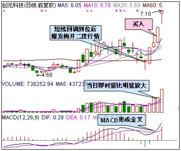 三、短線強(qiáng)力吸盤后,股價(jià)再度翻身向上時(shí)買入。一只股票的拉升,通常不會(huì)一蹴而就。一方面,短線資金會(huì)有較強(qiáng)的獲利出局意愿,制約了股價(jià)的進(jìn)一步走高;初論漲停板回踩買入的技術(shù)另一方面,主力也清洗浮籌,為后續(xù)拉升做準(zhǔn)備。而股價(jià)再度翻身向上,則說明短線洗盤結(jié)束,新的拉升就此展開,兔寶寶和中航精機(jī)基本都是這樣的走勢(shì)。