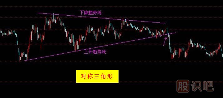 成交量在對(duì)稱三角形成的過程中不斷減少,正反映出好淡力量對(duì)后市猶疑不決的觀望態(tài)度,使得市場(chǎng)暫時(shí)沉寂。