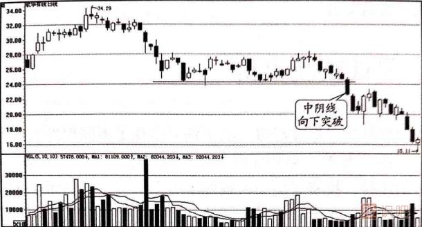 (1)股價跌破整理區(qū)出現(xiàn)的中、大陰線并不需要有成交量放大的配合。